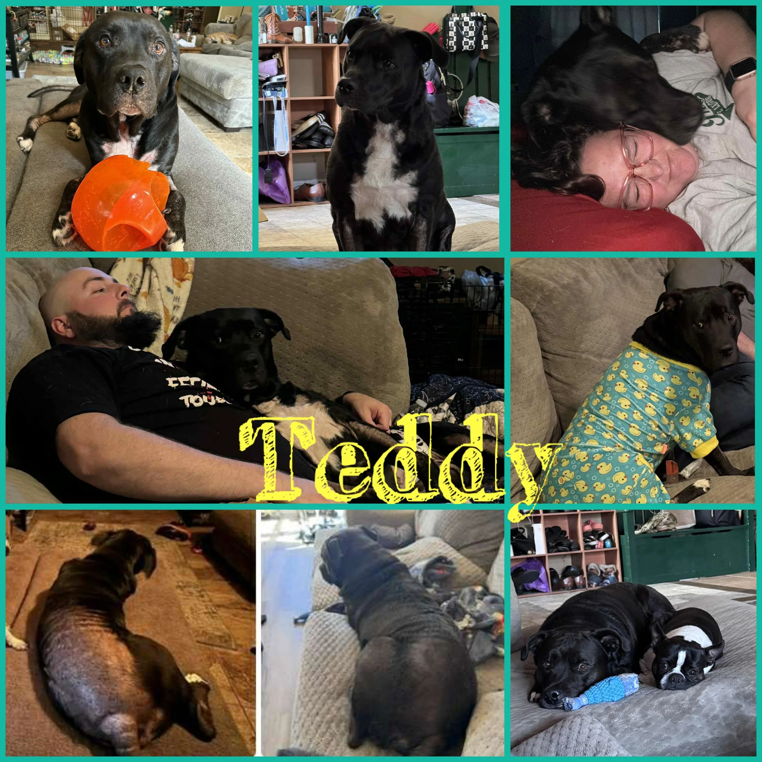 I was volunteering at the shelter and sweet Teddy (formerly known as Mr. T) was a mess. Had heart worm, missing a bunch of hair, and was a big guy. My husband Jon came to volunteer with me that Saturday and fell in love with him. I told him I didn’t think I wanted to take him on, and Jon said he didn’t think he’d get picked up quickly bc of all the reasons. So we took him home!